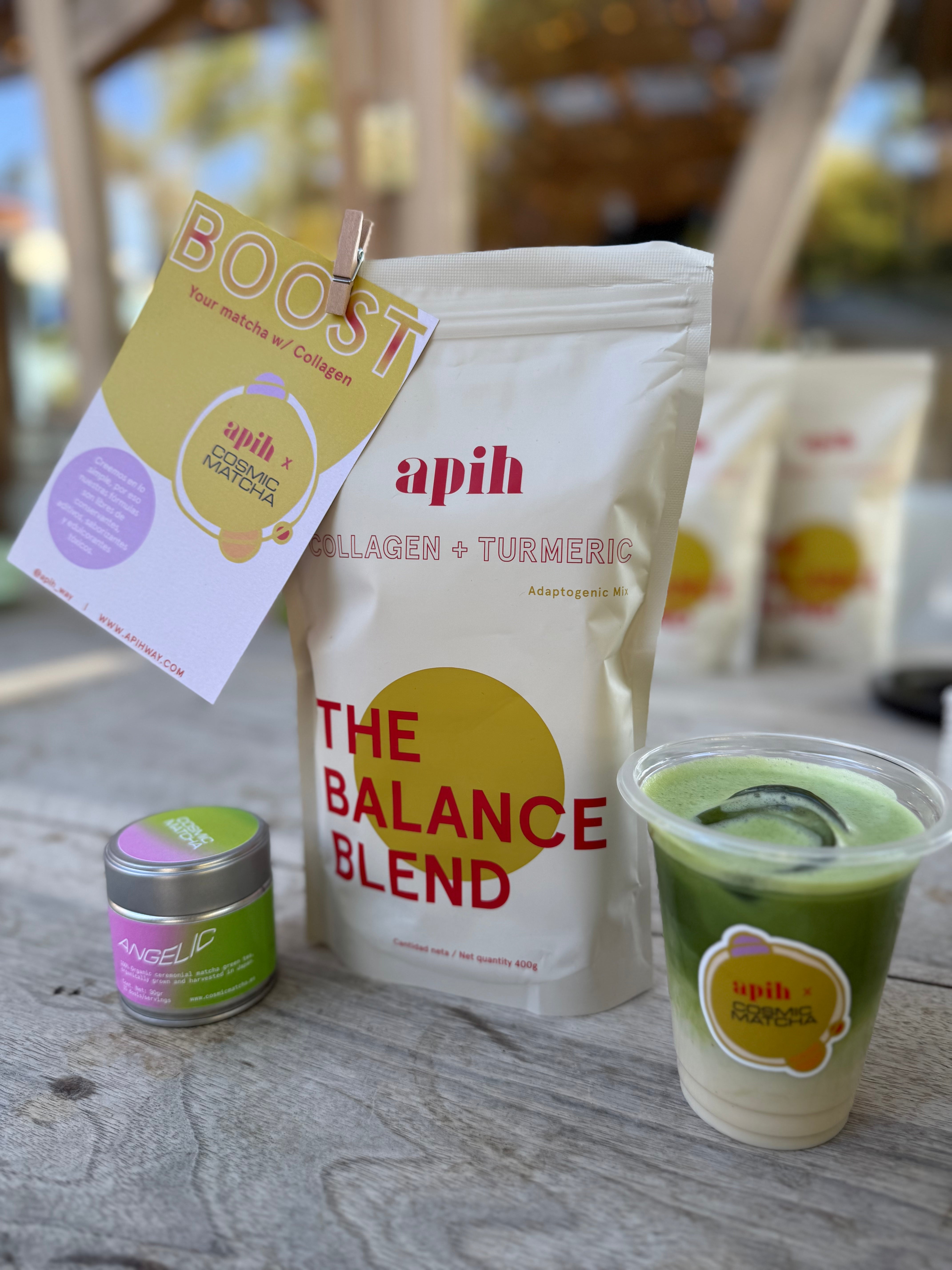 Sabemos que el matcha es sagrado — por eso, el Balance Blend de Apih se mezcla sin alterar su textura ni su sabor. Su fórmula neutra se disuelve fácilmente, convirtiéndose en el aliado perfecto para sumar beneficios sin restarle magia a tu taza. Más glow, misma esencia.