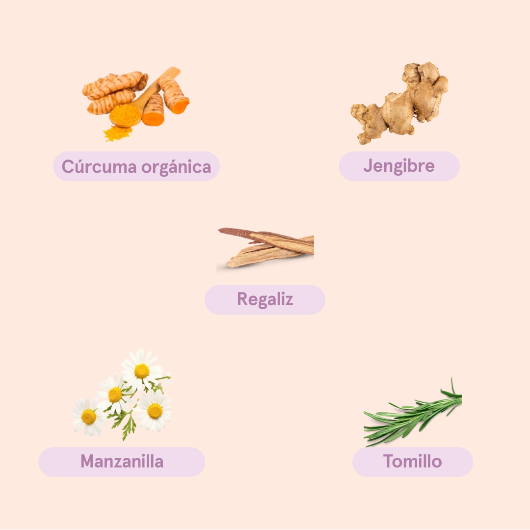 • Ingredientes clave como la cúrcuma, el jengibre y el regaliz empiezan a aliviar molestias digestivas y reducir inflamaciones intestinales.